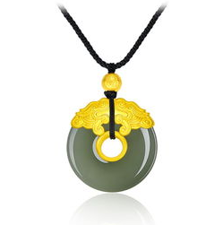 【周大福】国玉传承系列龙凤配足金黄金和田玉吊坠V113509精选